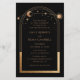 Orçamento Astronomia Dourada do Sol Negro Místico Foto Convites de Casamento Apresenta Sol dourado, Lua e estrelas com um quadro de ouro sobre fundo negro. Dentro é a sua informação de convite de casamento. Personalize editando o texto nas caixas de texto e adicionando sua foto favorita. Projetado para você por ©Evco Studio www.zazzle.com/store/evcostudio