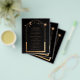 Orçamento A Astronomia Dourada do Sol Negro Místico Astronômica da Lua Nupa Contém Sol dourado, Lua e estrelas com um quadro de ouro sobre fundo negro. Dentro é a sua informação de convite de casamento. Personalize editando o texto nas caixas de texto. Projetado para você pelo Evco Studio www.zazzle.com/store/evcostudio