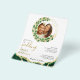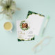 Crie os elegantes convites de casamento verde esmeralda para o seu tema joia casamento que apresentam a coroa de eucalipto e o padrão de estilo agate decorados com falsa brilho dourado. Faça o upload da sua foto usando o modelo para ter sua imagem em forma redonda. A foto quadrada é a melhor, mas você também pode tentar que outros vejam se ela se encaixa aqui. Personalize os convites com seus nomes, data, local e iniciais nos lados frontal e traseiro. Você pode personalizar ainda mais a dentro da ferramenta design.