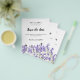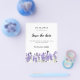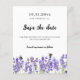 Observe que esta opção Save the date (Salvar a data) está no papel do folheto e muito fina. Os envelopes não estão incluídos. Para Cartões salve a data mais espessos (mesmo design) visite nossa loja. Um moderno e elegante Salve a Data para um casamento. Um fundo branco decorado com flores lavandas de cor aquosa. Personalize e adicione uma data e seus nomes. O texto: Salvar a Data é gravado com um script de estilo com letra de tendência grande. Fundo: fundo colorido de lavanda.