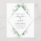Convites de Casamento Primavera com Eucalipto Botânico e Geométrico Verde e Dourado em Aquarela em Fundo Branco - inclui tipografia de letra cursiva bonita e elegante com folhas botânicas modernas e folhagens para a celebração especial do dia do casamento.