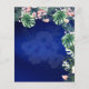 Tema moderno das folhas da ilha Real Azul tropical e das flores design. Os itens de coordenação com este design podem ser encontrados na coleção em anexo, que inclui convites para casamento, rsvp, salvar as datas, sinal de boas-vindas, adesivos, programas, menu, convites de chá de panela, janto de ensaio, convites para o conselho da nuestra, convites orçamentários e muito mais. Este tema de design é perfeito para o seu destino, praia, ilha tropical, casamento de verão. Design por marca registrada LeahG.