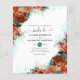 Turquesa espanhola - cartão de convite para casamento de verão para rosas de chá e corais projetado para ser rápida e facilmente personalizado de acordo com as suas especificidades de evento. Por favor, note-se que este convite orçamental está no papel de folheto e é muito fino. Os envelopes não estão incluídos. Para convites mais espessos com envelopes incluídos e produtos correspondentes no mesmo tema, consulte a coleção abaixo.