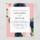 Convites de Casamento Primavera com Água-forte Floral Falso Moderno e Elegante Azul Marinho e Rosa Bege - inclui bela e elegante tipografia de letra cursiva com flores botânicas modernas e folhagens para a celebração especial do dia do Casamento.