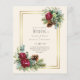 Lindos rosas de burlões, folhas de eucalipto, cones de pínus, e outros elementos festivos de inverno aparecem neste casamento no inverno moderno. Parte de uma coleção maior que inclui convites para casamento de orçamento, rsvps, salvas as datas, obrigados para você, etiquetas de presentes, ofertas de noiva e festa de casamento, obrigado para seus cartões com fotos e muito mais. para obter um guia gratuito detalhado sobre como planejar o casamento no inverno perfeito com muitas ideias de tema de casamento no inverno, visite weddingdesignchic.com.