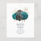 Flyer Casamento Teal, Negro e Dourado Gótico Floral
