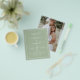 Budget Sage Green Wedding Primavera ou Summer Photo on Back Wedding Invtions - inclui uma bela e elegante tipografia de roteiro com uma cor simples e clássica moderna para a celebração especial do dia do casamento.