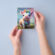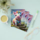 No coração de um campo vibrante com flores silvestres, um unicórnio bebê colorido franze alegremente sob o arco de um arco-íris radiante que se estende pelo céu. O corpo suave e gordinho do leitão é enfeitado em pintas e púrpuras pastéis, com manchas cintilantes de ouro e azul que captam a luz solar. Por cima de sua pequena cabeça está uma buzina espiralada, delicada e brilhando com uma luz azul iridescente, como se ela segurasse a própria essência da magia.