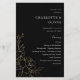 ******* O PAPEL MATTE É FINO. ATUALIZE UM PAPEL MAIS ESPESSURDO. NENHUM ENVELOPES INCLUÍDO. PARA CARTÕES, CARTÕES MAIS ESPESSURAS, VERIFIQUE O LINK ABAIXO. CARTÃO, CARTÕES ESPESSURAS TÊM UMA OPÇÃO PARA ENVELOPES OU INCLUI-OS******* Sem envelopes, versão do folheto. Economize dinheiro em convites formais com este convite em papel. Prepare seus convidados para o incrível janto de casamento e ensaio com seu Dourado Programa de Cerimônia de Casamento Floral em Preto. Quer este design em um papel mais espesso? Veja a nossa coleção de cartões. https://www.zazzle.com/collections/gold_lined_floral_invitation_suite-119041437435827916?rf=238937196885903396
