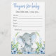 Jogos de chá de bebê menino com adorável elefante bebê em um fundo verde de flores azuis. Esses panfletos de jogos de chá de bebê de elefante são de dupla face com dois jogos diferentes.