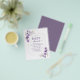 Chic e Moderno dentro do Orçamento, Convites de Chá de Bebê de Flores Lilás Roxas em Pó Botânicas com folhagens em Aquarela para Casamento de Outono, Inverno, Primavera ou Verão - inclui uma tipografia de texto cursivo bonita e elegante para a festa ou celebração especial da futura Mamãe.