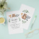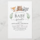 Bichos de Pavimentos - Ursos, Raios, Fox Eucalyptus Greenery Botânico Primavera Gênero Nêutrico Bebê ou Chá de fraldas de Bebê Rapariga Convites em fundo branco - inclui uma bela e elegante tipografia de roteiro com folhas botânicas modernas e verde para a celebração especial da Mãe a Ser.
