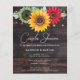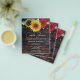Budget Rustic Sunflower Barn Casal Convite para Chá - apresenta girassóis vibrantes sobre um fundo de madeira de celeiro rústico, acentuado com luzes cintilantes e bonito tipografia de guincho. Um convite perfeito para o casal que ama um tema rústico.
