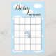 Chá de fraldas, amarelo/azul/castelo, cartão BINGO. Você pode querer comprar com "Amarelo/Azul/Castelo" correspondente, convite para bebês e selos postais. O texto na frente do cartão "Baby BINGO" pode ser apagado e vazio à esquerda, ou substituído pela cor, tamanho, estilo e texto da fonte favorita. O chá de fraldas BINGO é um jogo favorito para jogar num chá de fraldas. Antes de abrir presentes, os hóspedes escrevem o que pensam que a futura mãe pode receber em cada quadrado no cartão (24 quadrados-centro-quadrado é um espaço livre). À medida que a futura mãe abre os presentes, os convidados verificam os palpites corretos. Convidado que adivinha 5 em linha (cruzando, abaixando ou diagonalmente) ganha!