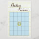 Chá de fraldas, Blue/Green OWL, cartão BINGO. Você pode querer comprar com "Blue/Green OWL" correspondente, convite para bebês e selo postal. O texto na frente do cartão "Baby BINGO" pode ser apagado e vazio à esquerda, ou substituído pela cor, tamanho, estilo e texto da fonte favorita. O chá de fraldas BINGO é um jogo favorito para jogar num chá de fraldas. Antes de abrir presentes, os hóspedes escrevem o que pensam que a futura mãe pode receber em cada quadrado no cartão (24 quadrados-centro-quadrado é um espaço livre). À medida que a futura mãe abre os presentes, os convidados verificam os palpites corretos. Convidado que adivinha 5 em linha (cruzando, abaixando ou diagonalmente) ganha!