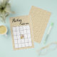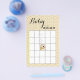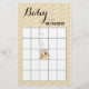 Chá de fraldas, Dourado/Preto/Estrelas/Bebê, cartão BINGO. Você pode querer comprar com o convite de chá e carimbo de correio correspondente a "Dourado/Preto/Estrelas/Bebê". O texto na frente do cartão "Baby BINGO" pode ser apagado e vazio à esquerda, ou substituído pela cor, tamanho, estilo e texto da fonte favorita. O chá de fraldas BINGO é um jogo favorito para jogar num chá de fraldas. Antes de abrir presentes, os hóspedes escrevem o que pensam que a futura mãe pode receber em cada quadrado no cartão (24 quadrados-centro-quadrado é um espaço livre). À medida que a futura mãe abre os presentes, os convidados verificam os palpites corretos. Convidado que adivinha 5 em linha (cruzando, abaixando ou diagonalmente) ganha!