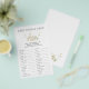 Jogo do nome do bebê animal - Edição de ganso do Bobo Traga risos, diversão e um toque de capricho para seu chá de fraldas com o Jogo do nome do bebê animal, perfeitamente projetado para combinar com o tema charmoso do Bobo Goose! Este jogo adorável apresenta uma ilustração brincalhona de um ganso mama e seu ganso bebê, colocado contra um histórico clássico de xadrez, amarrando-se lindamente na estética geral de sua celebração. Este jogo interativo convida seus convidados a testar seu conhecimento combinando animais bebês com seus nomes pais. De gatinhos e filhotes a gansos e filhotes, é uma forma deliciosa de despertar conversa, risos e competição amigável entre convidados de todas as idades. Sejam eles amantes de os animais ou apenas querendo se juntar à diversão, todos vão desfrutar do desafio desta atividade envolvente. O design elegante, porém brincalhão, garante que este jogo não seja apenas divertido, mas também uma adição perfeita ao tema Goose do Bobo. Completa a decoração e dá o tom para um evento alegre e memorável. Os detalhes cuidadosamente elaborados, incluindo os sotaques de xadrez suave e as ilustrações charmosas de ganso, criam uma experiência coesa e convidativa para todos os participantes. Perfeito para pequenas reuniões ou celebrações maiores, o Jogo do Nome do Animal do Bebê é uma maneira divertida de reunir seus convidados enquanto celebra a chegada de um pequeno. É mais do que um jogo — é uma maneira de criar memórias prezadas, despertar alegria e adicionar um toque exclusivo ao seu chá de fraldas. Deixe o Bobo Goose Baby Animal Game trazer sorrisos, risos e um pouco de magia extra para o seu dia especial!