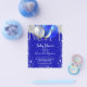 Por favor, note que este convite está no papel de folheto e é muito fino. Os envelopes não estão incluídos. Para convites mais espessos (mesmo design) visite nossa loja. Um fundo azul real. Decorado com falso brilho prateado pingando o aspecto de pingar tinta, faíscas e balões. Personalize e adicione um nome e detalhes da parte. O nome é escrito com um script de estilo manuscrito.