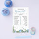 Que comece a diversão! Este adorável cartão de jogo de chá de fraldas desafia os hóspedes a ver quem sabe melhor as Mamães. Com flores azuis suaves, verde elegante, e um teste lúdico, é a maneira perfeita de adicionar risos e memórias ao seu dia especial. Um amor e na moda para a futura mãe!