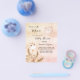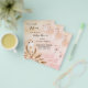 Por favor, note que este convite está no papel de folheto e é muito fino. Os envelopes não estão incluídos. Para convites mais espessos (mesmo design) visite nossa loja. Para um chá de fraldas moderno estilo boho. Um fundo rosa dourado, rosado, rosado e roxo, com aspecto metálico. Decorado com um bebê girafa fofo, grama de pampas e uma lua sorridente feliz. Personalize e adicione um nome e detalhes da parte.