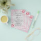 Por favor, note que este convite está no papel de folheto e é muito fino. Os envelopes não estão incluídos. Para convites mais espessos (mesmo design) visite nossa loja. Um chá de fraldas moderno, elegante, celebrando uma menina. Fundo metálico de aspecto fino prateado decorado com brilho falso rosa, faíscas e flores. Personalize e adicione um nome e detalhes da parte. Letras pretas coloridas.