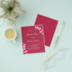 Por favor, note que este convite está no papel de folheto e é muito fino. Os envelopes não estão incluídos. Para convites mais espessos (mesmo design) visite nossa loja. Um fundo magenta, decorado com caules de eucalipto, galhos. Personalize e adicione um nome e detalhes da parte.
