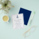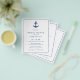Folheto de chá de panela de orçamento náutico com um design simples e moderno com uma âncora azul marinho junto com os detalhes de seu evento dentro de uma fronteira, sobre um fundo branco. Um design elegante que é perfeito para a celebração do tema na costa de verão na praia. Esses convites de chá de panela baratos são impressos em folhas de papel para uma opção econômica. NOTA: não incluem envelopes.