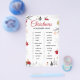 Festive Christmas scavenger hunt checklist artwork with a clean white background and charming holiday illustrations. Designed with elegant red cursive typography, surrounded by cozy winter elements like evergreen branches, snowflakes, houses, trees, a snowman, and warm holiday details. The balanced layout creates a joyful seasonal atmosphere perfect for family-friendly celebrations. All text and images are fully editable, allowing easy changes to match any style or preference.