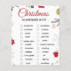 Festive Christmas scavenger hunt checklist artwork with a clean white background and charming holiday illustrations. Designed with elegant red cursive typography, surrounded by cozy winter elements like evergreen branches, snowflakes, houses, trees, a snowman, and warm holiday details. The balanced layout creates a joyful seasonal atmosphere perfect for family-friendly celebrations. All text and images are fully editable, allowing easy changes to match any style or preference.