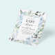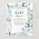 Convites de Chuva de Bebê em Azul Desbotado com Flores de Rosas e Eucalipto Botânico Verde Água Primavera ou Verão - inclui uma bela e elegante tipografia de letra cursiva com flores botânicas modernas e folhagens para a celebração especial da Futura Mãe para a chegada de um Bebê Menino ou Bebê Menina.