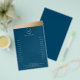 Elegante, azul, faixa dourada, círculo, folheto monograma. Não há brilho ou textura. Edite seu produto em minutos inserindo seus dados. Você pode alterar a fonte, cor e posição "personalizando mais".