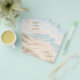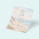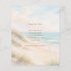 A watercolored sandy beach, sand dunes, ocean waves background. Personalize and add a date and your names. The text: Save the Date is written with a large trendy hand lettered style script.