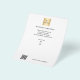 Fundo branco. Personalize e adicione o logotipo, nome, endereço, texto, seu próprio código QR. Voltar: adicione uma foto e mais texto.