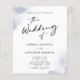 Convite de Casamento com Código QR Tudo em Um, Moderno e Chic, com Caligrafia Preta e Azul Pó Água... Nosso convite de casamento acessível e moderno com lavagem de aquarela azul pó apresenta caligrafia moderna combinada com texto serifado e sem serifa para um convite de casamento simples e chique. O verso do convite também exibe o código QR do site do casamento, bem como a URL do site, permitindo que os convidados respondam facilmente online e visualizem todos os detalhes normalmente enviados em um pacote de casamento. O modelo gráfico do código QR de exemplo e todo o texto de exemplo (exceto os elementos de caligrafia gráfica) podem ser facilmente revisados com suas próprias informações no modelo de personalização. OBSERVAÇÃO IMPORTANTE: O papel para o nosso convite de orçamento mais acessível é de 80 g e a espessura do papel mais comumente usada para panfletos de negócios e eventos. Sua loja de suprimentos de escritório ou loja online poderá fornecer os envelopes A6 para esses convites. Nossa Coleção de Casamento com Caligrafia Moderna e Chic Água inclui um convite de orçamento com código QR de peso ligeiramente mais pesado, bem como cartões planos tradicionais com seu código QR.