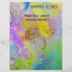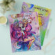 Corneta colorida, branca, rosa-rosa engraçada, tocando coruja com uma coruja expressiva e notas musicais alegres, flores, folhas em vermelho vibrante, fúcsia, violeta, roxo, azul, cores brancas, pintura aquarela de Búlgaro Lumini (c)