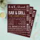 Coma, Beba Bar & Grill, Folhetos Publicitários Pub/Brewery Pela Loja De Cartão de visita.