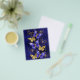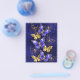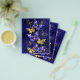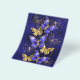 Composição de borboletas luxuosas de safira e joias de ouro em fundo azul texturizado.