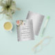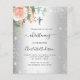 Por favor, note que este convite está no papel de folheto e é muito fino. Os envelopes não estão incluídos. Para convites mais espessos (mesmo design) visite nossa loja. Um fundo de aparência praticamente prateada decorado com verde de eucalipto, um rosa de ouro e rosa-rosa-pincel, folhas de ouro e falso brilho prateado. Uma cruz de prata. Personalize e o nome e os detalhes da cerimônia.