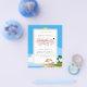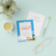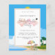 Apresentando um fundo azul brilhante, design oceânico com palmeiras tropicais e um sol amarelo brilhante, assim como uma bela cadeira de praia rosa e um guarda-chuva de praia para pintar a cena. Consulte a coleção para opções de convite premium.