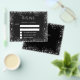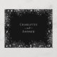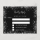 Um fundo preto chique. Decorado com brilho prateado falso, faíscas. Personalize e adicione a data de resposta e seus nomes.