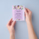 Por favor, note que este convite está no papel de folheto e é muito fino. Os envelopes não estão incluídos. Para convites mais espessos (mesmo design) visite nossa loja. Um fundo violeta, lavanda, de cor aquosa. Decorados com flores violetas e púrpuras, de cor aquosa, e com uma cruz ouro. Personalize e adicione seu nome e detalhes de recepção.
