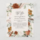 Convite de casamento floral de cor d'água rústica do orçamento e cartão de detalhes. Com belas ferrugem, terracota, cor-de-rosa pincelada, preta e verde-sábio, os detalhes da aquarela de eucalipto. Este convite de casamento moderno certamente define o estilo para o seu grande dia.
