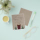 Convite à Casa Aberta de Férias Russas do Orçamento - com uma adorável casa saltbox de país aninhada entre 2 Pinheiros e deitada com neve. O fundo é o Kraft russo. O convite da Casa Aberta de Férias faz parte de uma coleção.