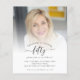 Um alternativo PAPER (não cartão) com valor de excelente SEM ENVELOPES com tamanho menor de 4,5" x 5,6" e a um preço orçamentário. (envelopes A6 padrão são o tamanho mais próximo ao ajustado). Convite de aniversário 50º Script de Fotografia. Um design minimalista totalmente personalizável para cinquenta ou qualquer festa de aniversário etária, basta substituir a foto de amostra pelo seu favorito e personalizar o texto conforme necessário
