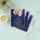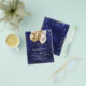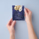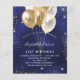Um convite moderno, elegante e glamoroso para uma festa de 21 anos (ou qualquer idade). Um fundo azul marinho, decorado com brilhos azuis e dourados e balões dourados. A cor azul é irregular. Personalize e adicione seu nome e detalhes da festa.