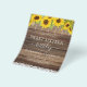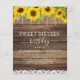 Festa de Aniversário de Dezesseis (16) Anos por um Orçamento - Convites de Lace com Luzes de Corda Rústicas de Campo de Girassol em Fundo de Madeira - inclui tipografia de script bonita e elegante com brilho moderno de Casa de Campo para a celebração especial do 16º aniversário.