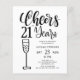 Moderna tipografia manuscrita preta e branca estilosa e moderna, "Cheers to 21 years" / convite de aniversário para homem de qualquer idade, flyer de festa de baixo orçamento. ++++++++++ Fácil de personalizar com a idade e detalhes da sua festa! ++++++++++ POR FAVOR, LEIA ISTO ANTES DE COMPRAR! Este é um cartão de casamento de baixo custo impresso em um FLYER. ++++ Por favor, note que o PAPEL DE ORÇAMENTO É FINO - Você pode atualizar para ter este cartão impresso em papel cartão ++++ ENVELOPES NÃO INCLUSOS. +++ Verifique todas as informações e ortografia do seu texto, pois você receberá exatamente o que vê - ninguém mais verificará nada antes da impressão. ++++ Este cartão é projetado para o tamanho 4,5" x 5,6". Caso você escolha outro tamanho do cartão e o texto ultrapasse a página, tudo precisará ser corrig