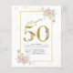 Flyer Convite de aniversário de 50 anos em ouro floral c