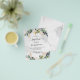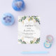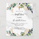 Impressão de mármore ao fundo decorada com folhagem de eucalipto e folhas douradas. Uma cruz dourada. Personalize com o nome da criança e detalhes da cerimônia.