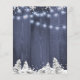 Modelo de convite/flier de casamento rústico elegante de inverno com orçamento acessível em madeira de celeiro azul-navy com borda de pinheiros em um mundo encantado, flocos de neve brancos e cordas de luzes cintilantes. +++++++++++ Fácil de personalizar com seus detalhes. +++++++++++ O convite é adequado para casamentos rústicos elegantes de inverno nas montanhas com azul-navy e branco. ++++++++++ POR FAVOR, LEIA ISSO ANTES DE COMPRAR! Este é um cartão de casamento com orçamento acessível impresso em um FLYER. ++++ Por favor, note que o PAPEL ECONÔMICO É FINO - Você pode atualizar para ter este cartão impresso em papel cartão ++++ ENVELOPES NÃO INCLUSOS. +++ Verifique novamente todas as informações e ortografia do seu texto porque você receberá exatamente o que vê - ninguém mais verificará nada antes da impressão. ++++ Este cartão é projetado para o tamanho 4,5" x 5,6". No caso de você escolher outro tamanho do cartão e o texto